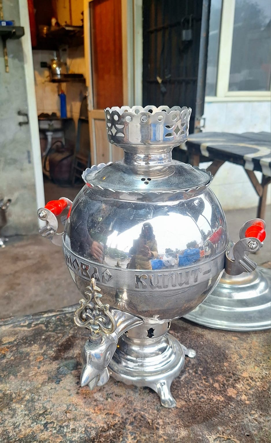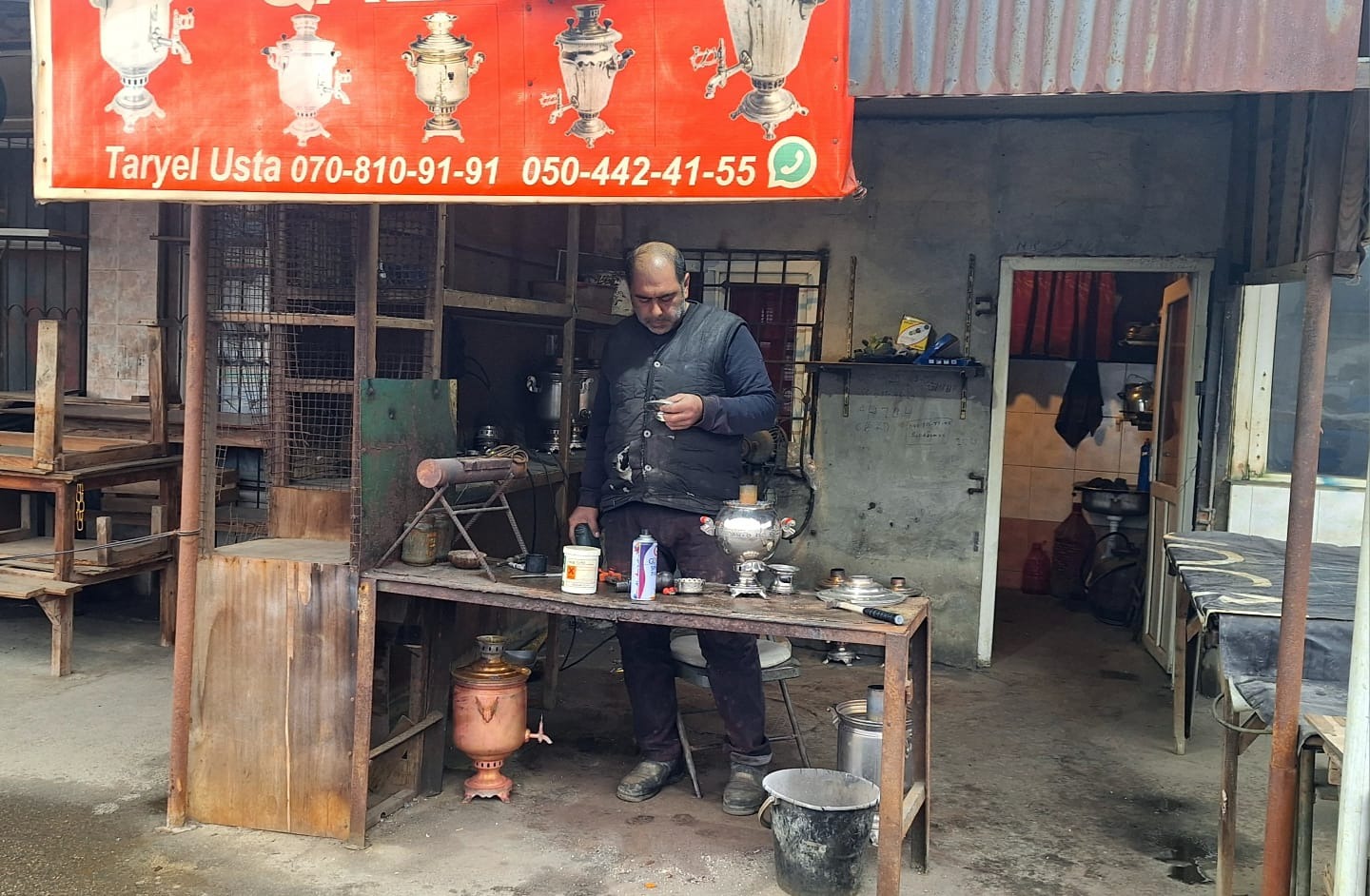 Bazarda piştaxtaların əksəriyyəti bağlı olsa da, usta Tariyel iş başında idi. Yaxınlaşıb samovarların qiymətini soruşuram: “Yox, bunlar satlıq deyil. Gətirirlər, mən də bərpa edirəm”, – deyə cavab verir.