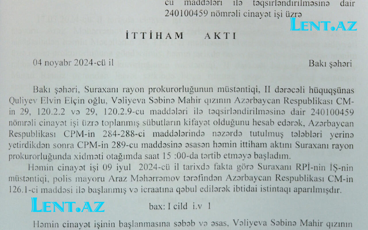 Moderator.az xəbər verir ki, Lent.az cinayət hadisəsinin istintaq materiallarını əldə edib.