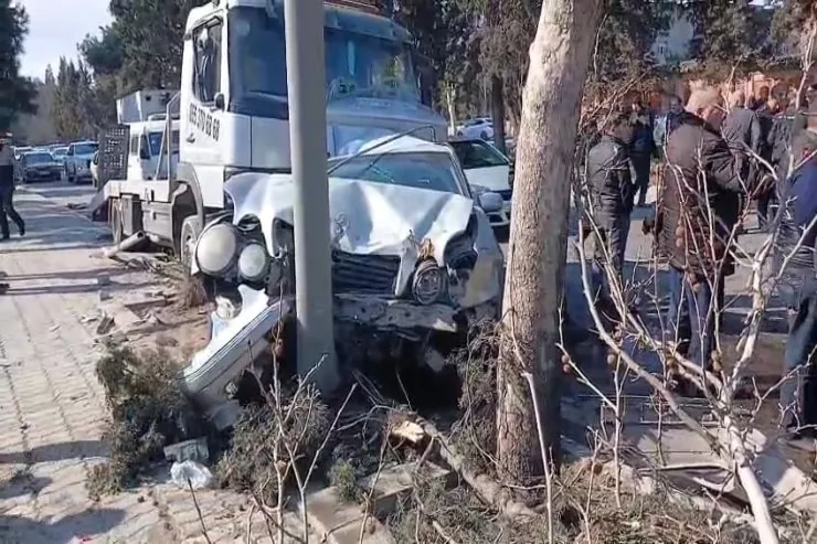 Belə ki, hərəkətdə olan evakuator yol kənarında dayanan "Mercedes"ə çırpılıb.
