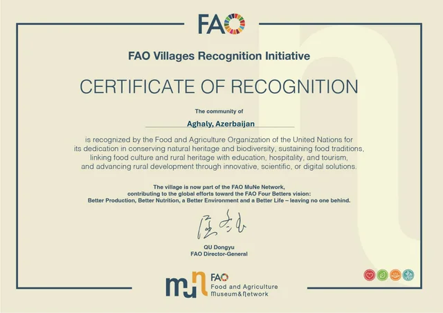Zəngilan rayonunun Ağalı kənd icması Birləşmiş Millətlər Təşkilatının "Qida və Kənd təsərrüfatı Təşkilatı" (UN, FAO) tərəfindən təbii irsin qorunması, biomüxtəlifliyin dəstəklənməsi və dayanıqlı kənd inkişafına verdiyi töhfəyə görə nümunəvi kənd icması kimi tanınıb.