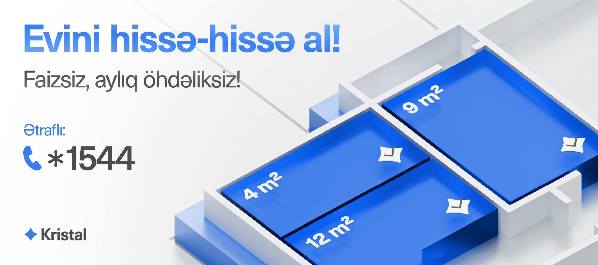 Faizsiz, aylıq öhdəliksiz “Evini hissə-hissə al” modeli ilə Biləcəridə mənzil sahibi ol - “Kristal!”