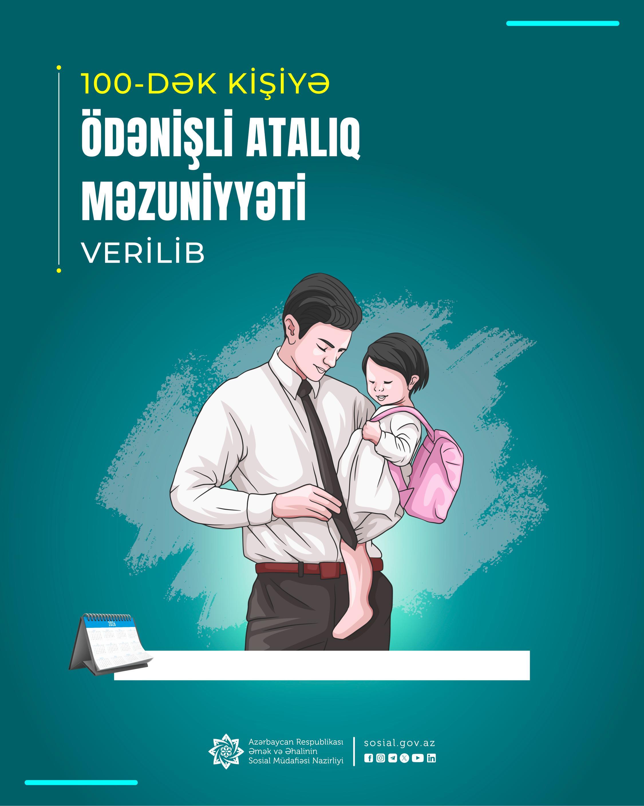 100-dək kişiyə ödənişli atalıq məzuniyyəti verildi