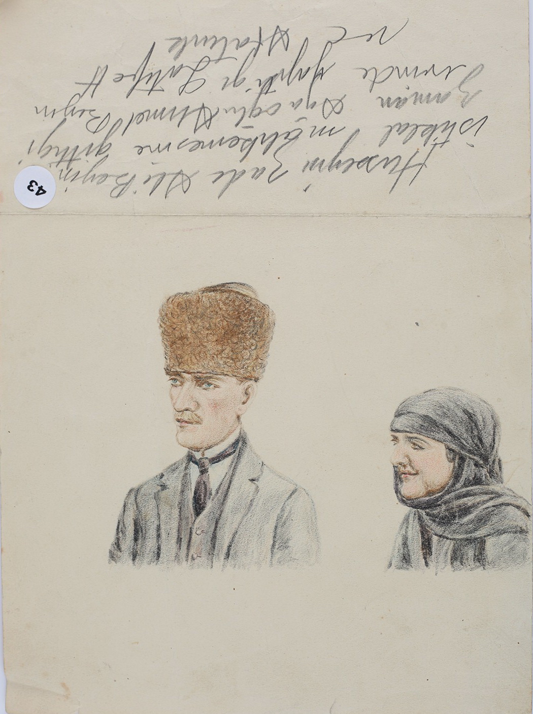 “Atatürk və Lətifə xanım”. Material: kağız, karandaş, ölçü 26.5x18.5
