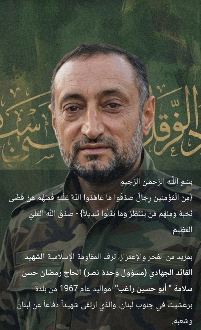 Bundan əlavə, “Hizbullah”ın mətbuat xidməti təşkilatın hərbi qanadına daxil olan “Nəsr korpusu”nun komandiri Ramazan Həsən Səlamənin də həlak olduğunu təsdiqləyib. Bildirilir ki, o, uzun illər İranın İslam İnqilabı Keşikçiləri Korpusunun sabiq komandiri Qasım Süleymaninin yaxın tərəfdaşlarından biri olub.