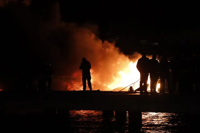 Yanğınsöndürmə qüvvələri dəyəri milyonlarla dollar məbləğində olan yaxtalarda alovları söndürmək üçün həm qurudan, həm də dənizdən səylər göstərirlər.
