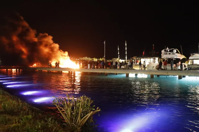 Türkiyənin Muğla bölgəsinin Bodrum şəhərində lövbər salan bir yaxtada yanğın baş verib.
