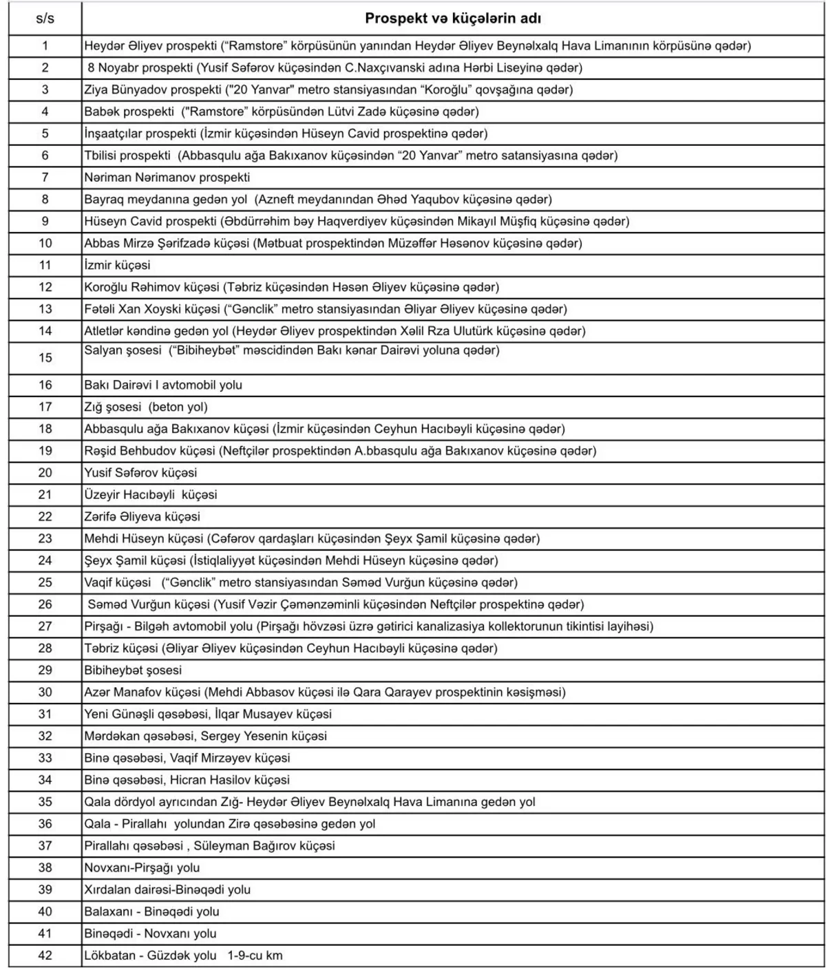 Agentlik təmir işlərini ümumilikdə 42 ünvanda aparacaq. Təmir olunacaq küçələrin ümumi sahəsi 151 849 kv.m təşkil edir.