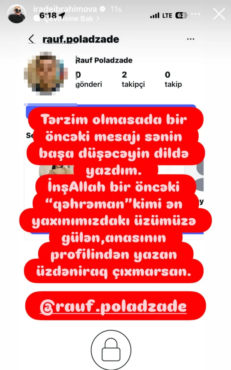 Moderator.az xəbər verir ki, bu barədə İradə instaqramda "story" paylaşıb.