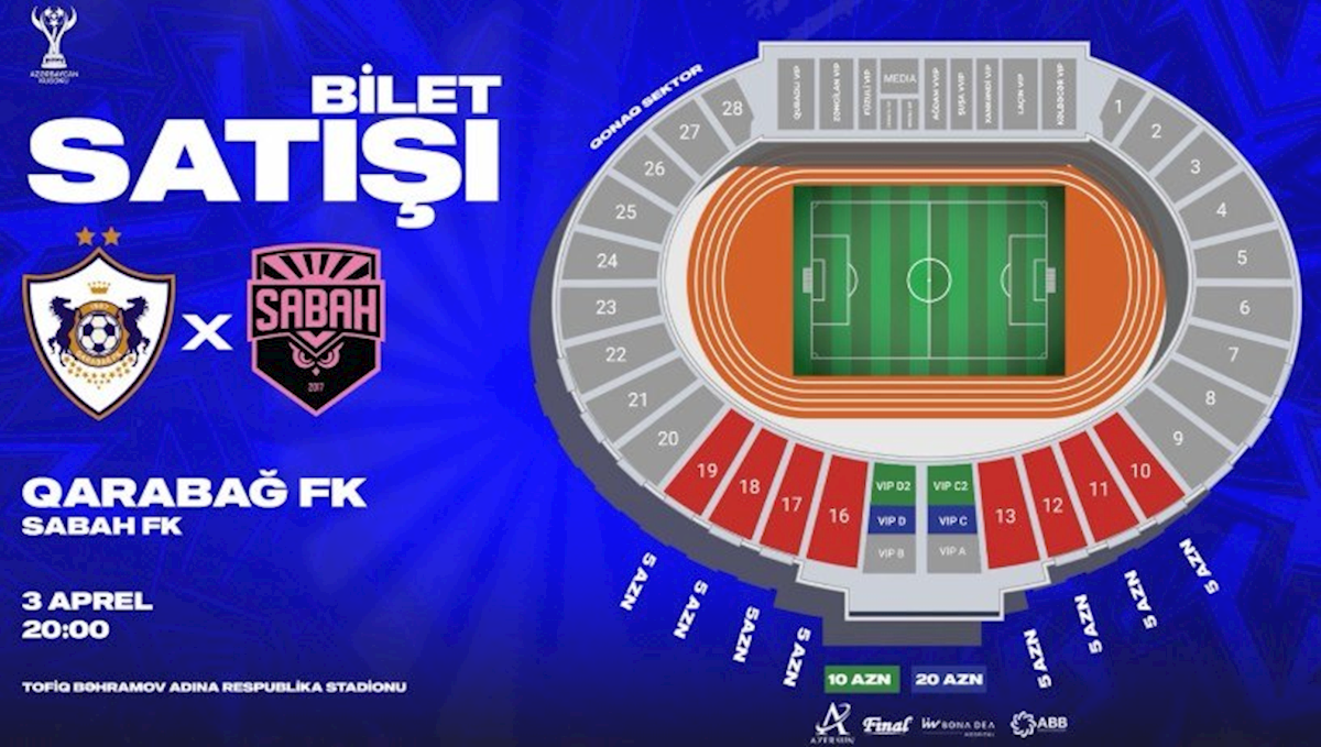 Azərbaycan Kubokunun yarımfinal mərhələsi çərçivəsində keçiriləcək “Sabah”la oyunun biletləri bu gün saat 15:00-dan etibarən satışda olacaq.