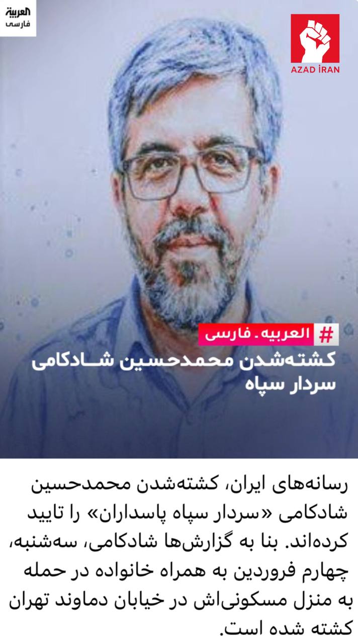 Məlumatda bildirilir ki, bir neçə gün öncə ABŞ-İsrail qüvvələrinin hücumları zamanı SEPAH generalı Məhəmmədhüseyn Şadkami həyatını itirib.