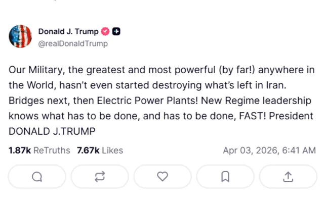 "Növbəti mərhələdə hədəf körpülər, sonra isə elektrik stansiyaları olacaq! Hakimiyyətdəki yeni rejim nə etməli olduğunu bilir və bunu tez bir zamanda həyata keçirmək lazımdır!"