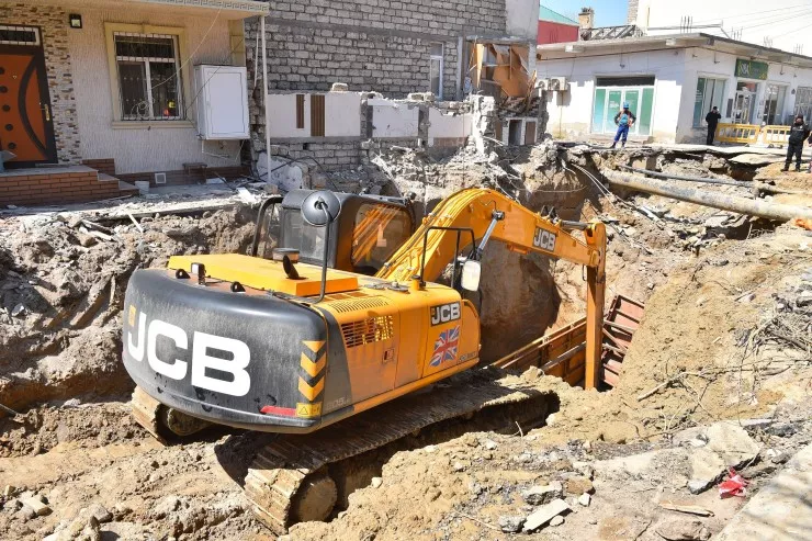 Üzərində evlər tikildiyinə görə çökən kollektorun qəzalı hissəsi dəyişdirilir - FOTO/VİDEO