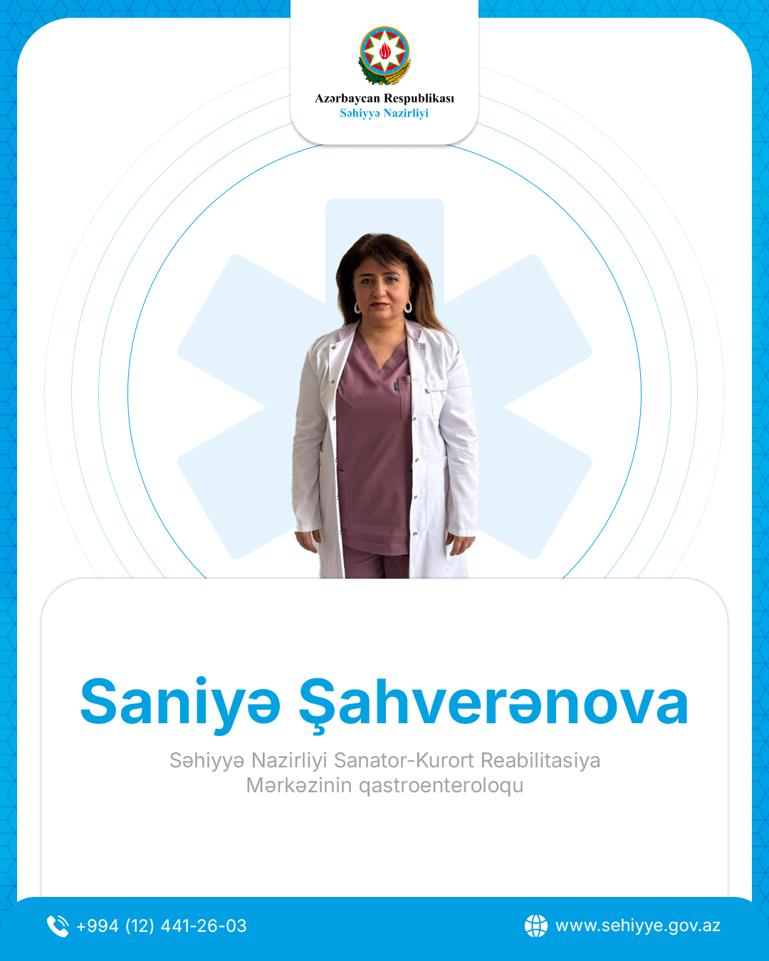 Moderator.az Səhiyyə Nazirliyi Sanator-Kurort Reabilitasiya Mərkəzinin qastroenteroloqu Saniyə Şahverənovanın mövzu ilə bağlı müsahibəsini təqdim edir.