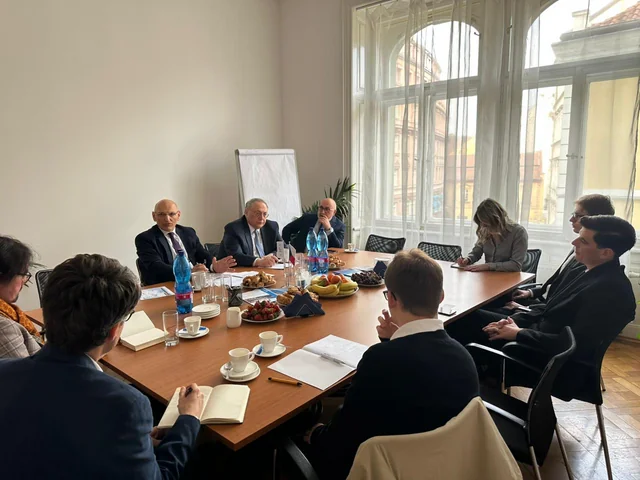 Elçin Əmirbəyov səfər çərçivəsində Çexiyanın nüfuzlu beyin mərkəzlərindən biri olan Siyasət və Cəmiyyət İnstitutunda təşkil olunmuş dəyirmi masada çıxış edib, "CNN Prima News" televiziya kanalına və "Europe" jurnalına müsahibələr verib.
