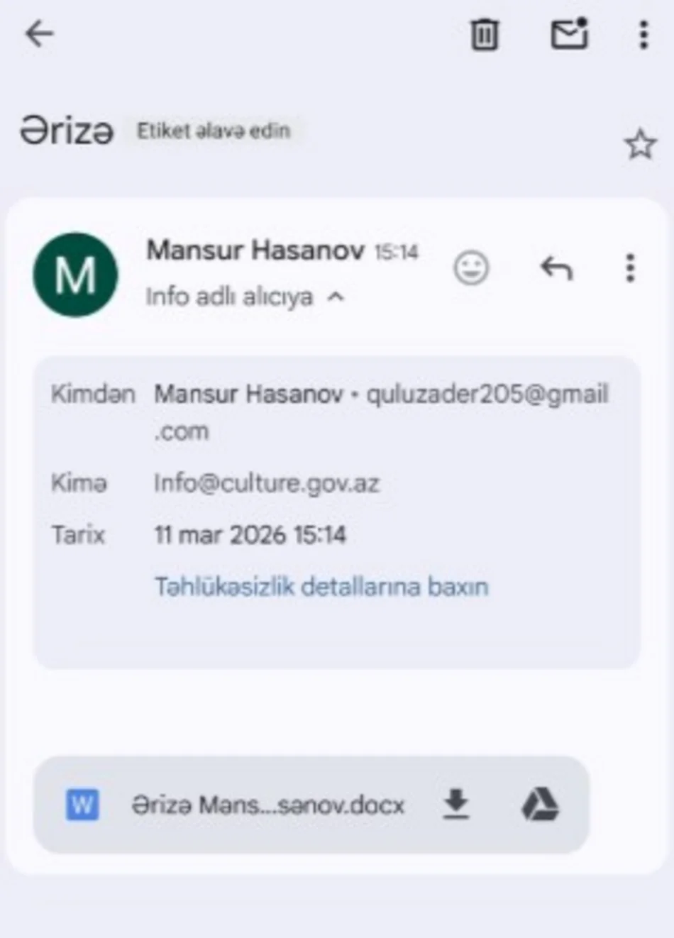 Şikayətçinin sözlərinə görə, 2025-ci ilin dekabr ayından etibarən məsələ ilə bağlı Mədəniyyət Nazirliyinə dəfələrlə yazılı müraciətlər ünvanlasa da, bu günədək rəsmi cavab almayıb.
