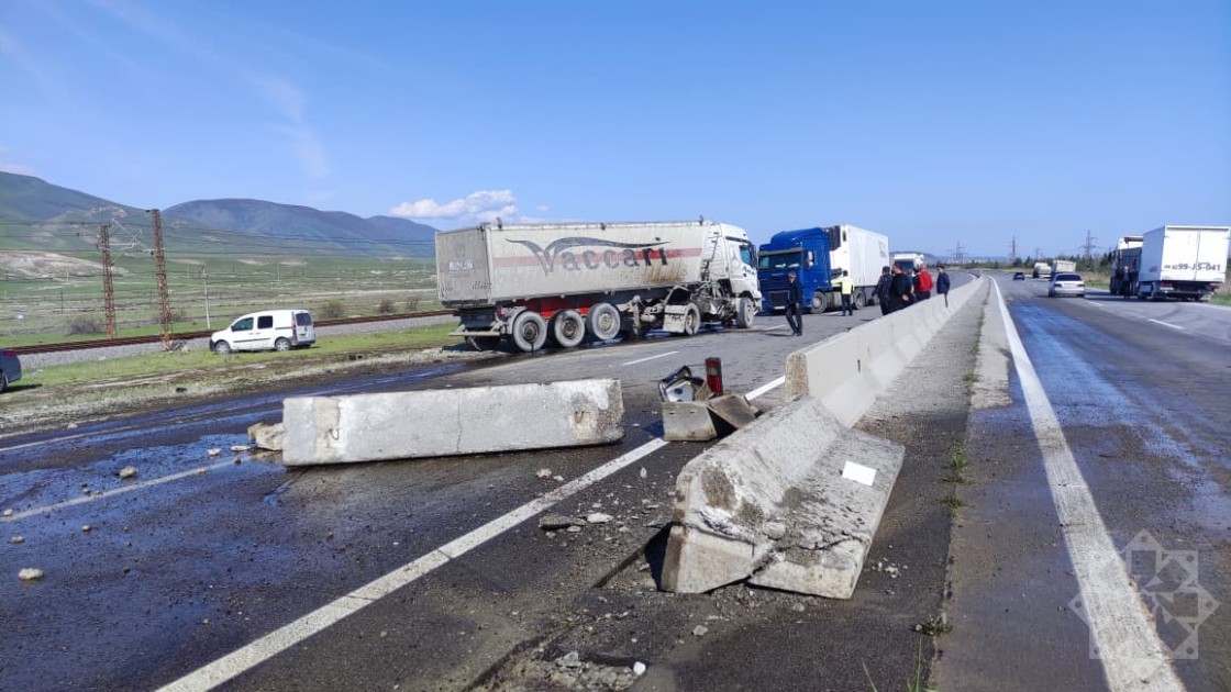 Quba istiqamətində hərəkətdə olan yük maşını idarəetmənin itirilməsi nəticəsində beton maneələrə çırpılaraq yolun əks tərəfinə çıxıb. Bundan sonra qarışdıdan gələn “VAZ 21015” markalı avtomobillə toqquşub.