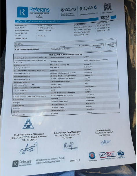 “Bilməzdim ki, bu qədər qanunsuzluğa gedərlər və yazılar ki, guya mən narkotik istifadəçisiyəm. Bu, açıq-aşkar yalandır. Mən növbəti gün müstəqil ekspertizadan keçmişəm, əlimdə rəsmi analiz nəticəsi var. Mən narkotik istifadəçisi deyiləm. Bütün bunlar Mikayıl İsmayılovun oğluna qarşı açdığım məhkəmə iddiasına görə quraşdırılmış işlərdir. Məni bu üsullarla geri çəkilməyə məcbur edə bilməyəcəklər”.