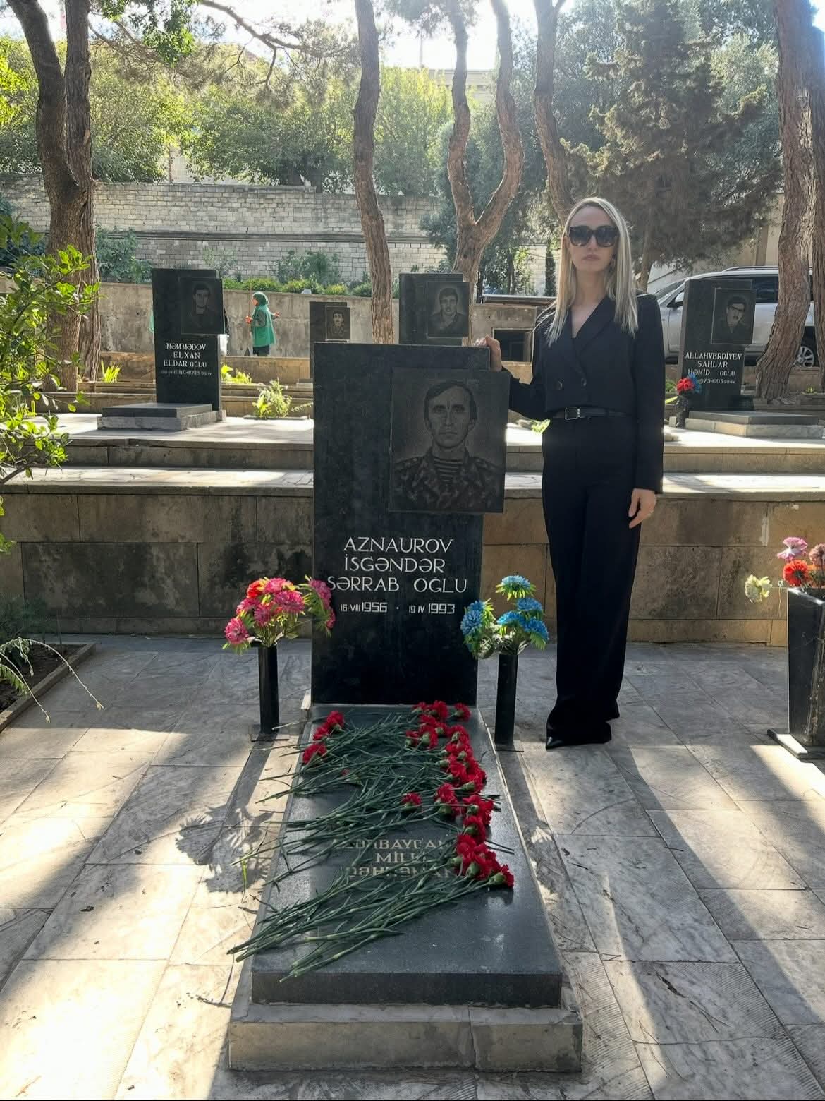 Azərbaycanın Milli Qəhrəmanı, Axısqa türkəsilli, Qarabağ müharibəsi şəhidi İsgəndər Aznaurovun qızı Zuina Aznaurova atasının məzarından paylaşım edib.