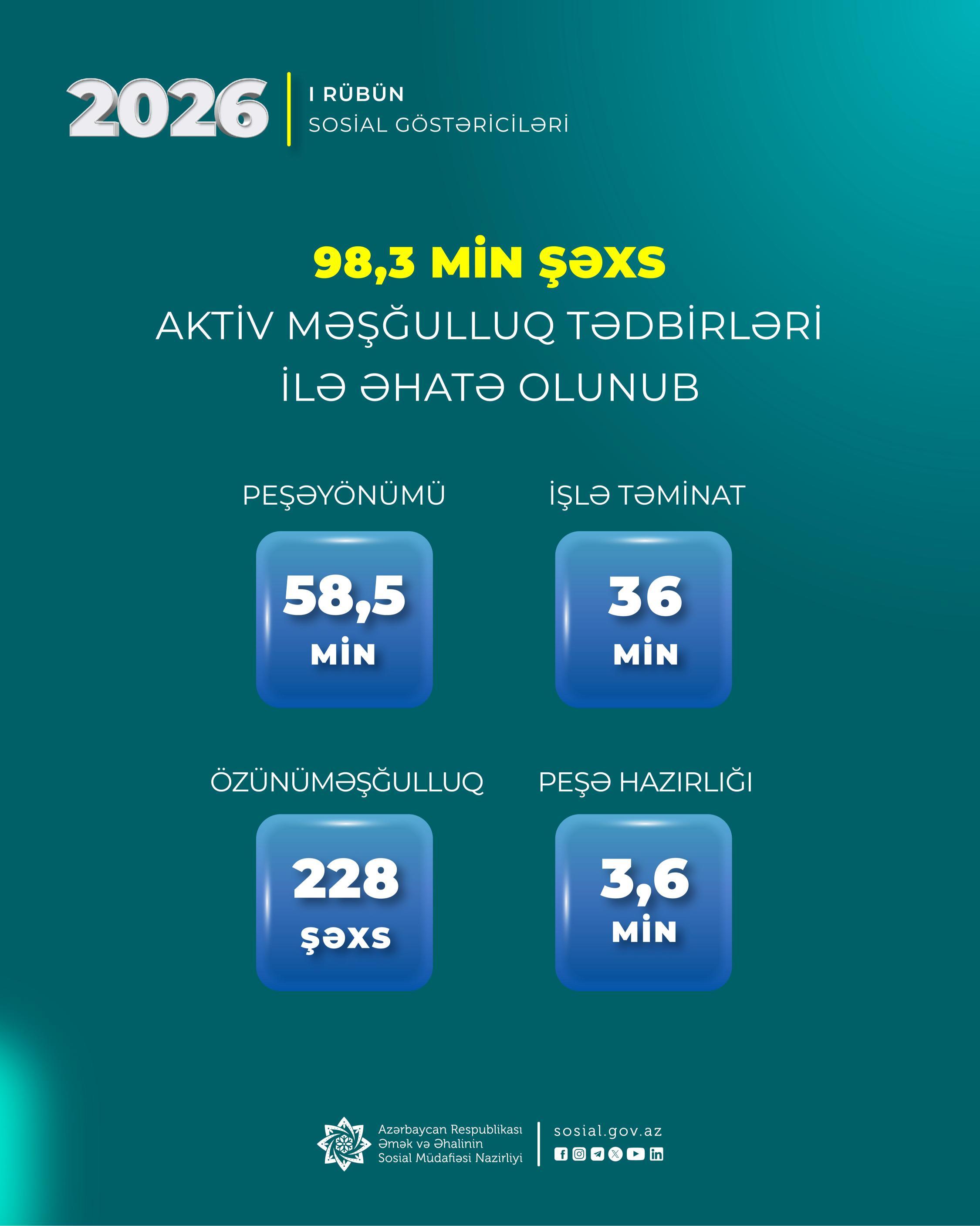 3,6 min işsiz şəxs üçün isə peşə hazırlığı kursları təşkil olunub, 58,5 min şəxsə peşəyönümü xidmətlər göstərilib.