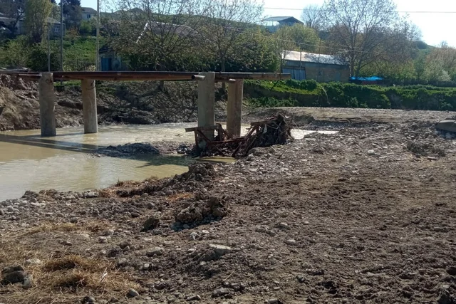 Şabran rayonunda yağan güclü yağışlar nəticəsində gələn sel Xəlfələr kəndində körpünü uçurub.