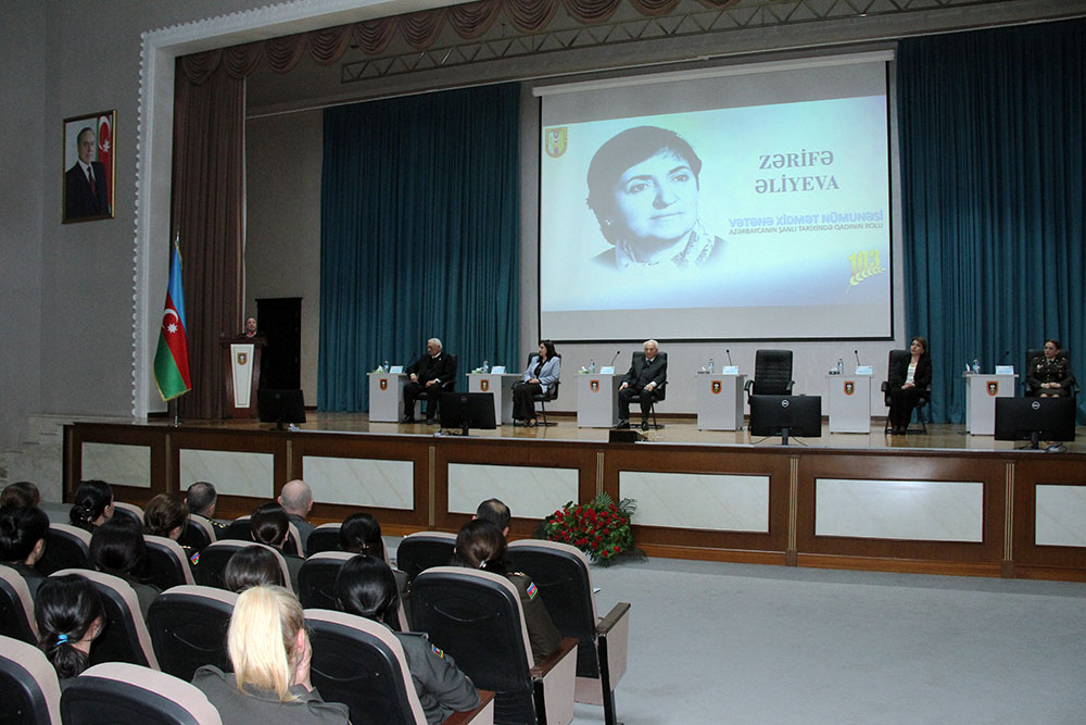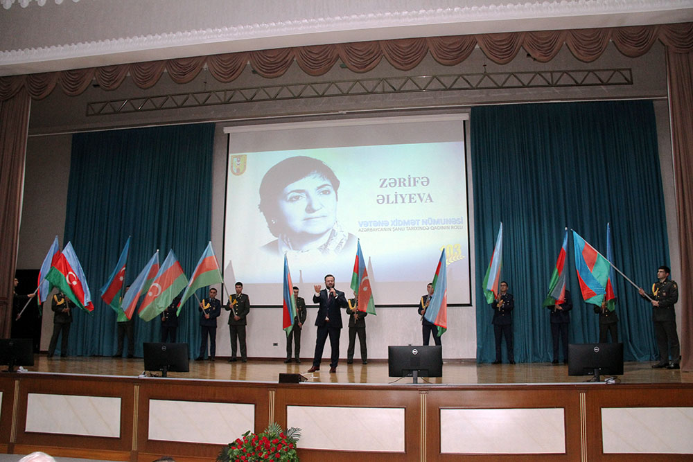 Heydər Əliyev adına Hərbi İnstitutda təşkil olunan “Vətənə xidmət nümunəsi: Azərbaycanın şanlı tarixində qadının rolu” adlı xatirə gecəsində xalqımızın Ümummilli Lideri Heydər Əliyevin, görkəmli oftalmoloq-alim Zərifə xanım Əliyevanın və Vətən uğrunda canlarından keçmiş şəhidlərimizin əziz xatirəsi bir dəqiqəlik sükutla yad edilib. Azərbaycan Respublikasının Dövlət Himni səsləndirilib.