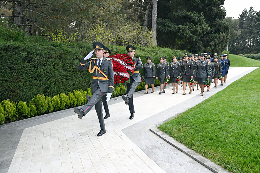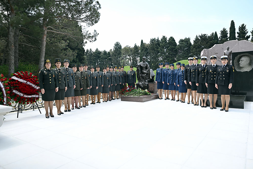 Azərbaycan Ordusunun bir qrup qadın hərbi qulluqçusu Zərifə xanım Əliyevanın Fəxri xiyabandakı məzarını ziyarət edib, önünə əklil qoyub və əziz xatirəsinə böyük ehtiram nümayiş etdiriblər.