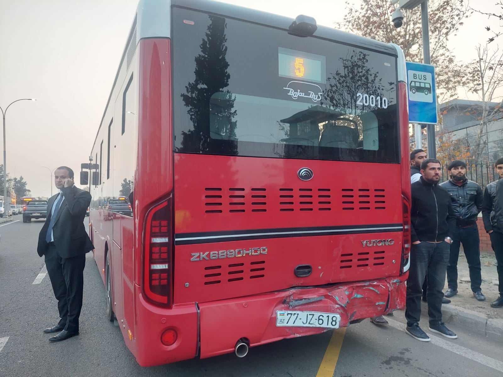 Belə ki, hərəkətdə olan minik maşını "BAKU BAS"a məxsus sərnişin avtobusuna çırpılıb.