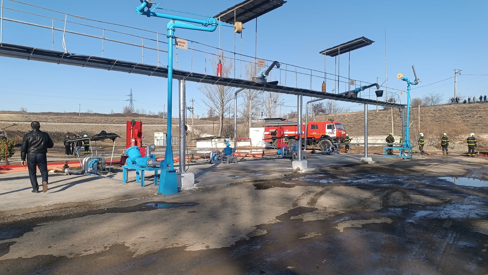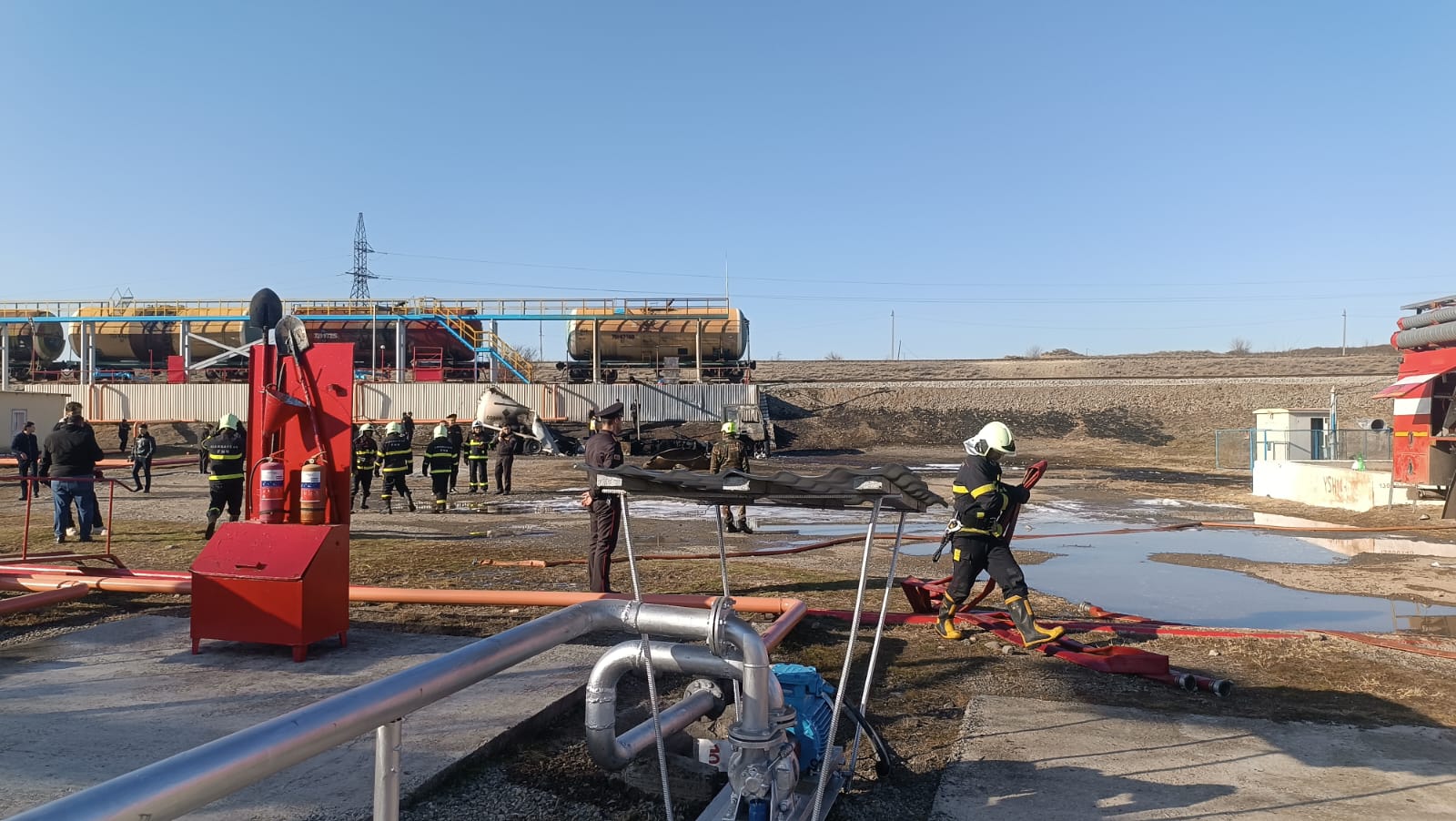 Yaxınlıqdakı yanacaq çənləri yanğından mühafizə olunub.