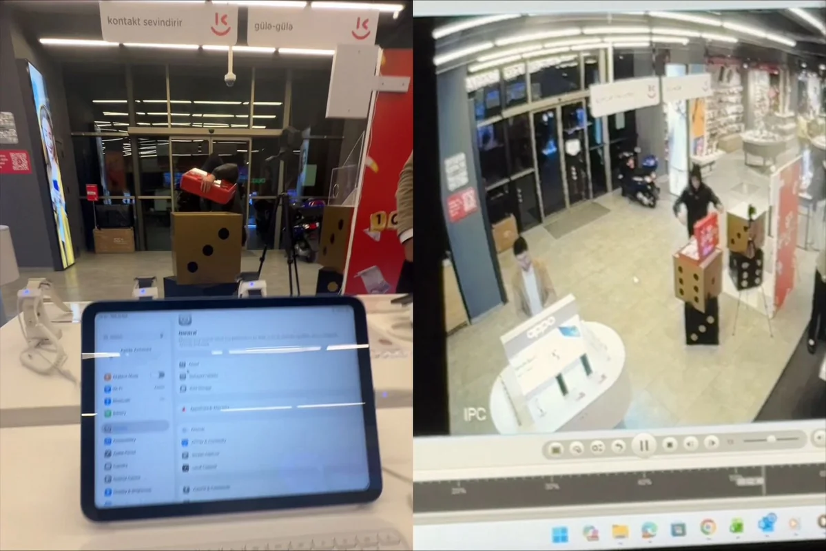 Mağazanın daxili təhlükəsizlik kameralarından sızan digər görüntülərdə isə mühafizə xidmətinin hadisə anını təhlil etdiyi eşidilir.