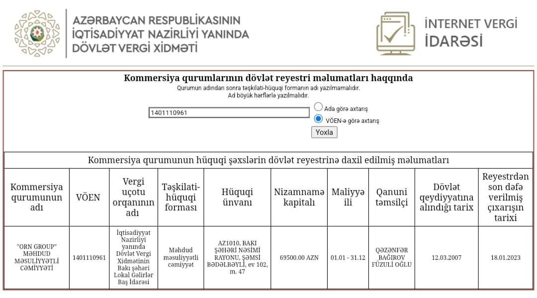 Şirkət Bakıda NƏSİMİ RAYONU, ELDAR TAĞIZADƏ, ev 18A ünvanında hüquqi qeydiyyatdadır. Burada qeydiyyatda olan digər şirkət - ORN GROUP MMC ötən il İcbari Tibbi Sığorta üzrə Dövlət Agentliyindən 4 milyon 144 min manatlıq tender əldə edib. ORN GROUP 2004-cü ildə Bakıda, onun uzantısı ORN GMBH isə 2008-ci ildə Avstriya paytaxtında yaradılıb. ORN GMBH (//www.orn-group.com/) Vyanada Reisnerstraße 61 ünvanında yerləşir. Əvvəllər şəxsən Ziyəddin Əliyevin özünün təsis etdiyi, sonradan oğlu Nicat Əlibəylinin idarəçiliyinə verilən S.M.A.N Business Solutions GMBH də burada fəaliyyət göstərir. Şirkətin adı təsisçilərin adlarının baş hərflərindən (Orxan, Ramin, Nicat) götürülüb. Ziyəddin Əliyevin oğlu Nicat Əlibəyli Vyanada "Kenny" restoranlar şəbəkəsinə də 25 faizlik payla şərikdir.