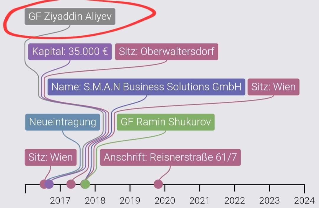 AZPOROMO-nun (Azərbaycan Respublikasının İxracın və İnvestisiyaların Təşviqi Agentliyi) Avstriyadakı təmsilçisi Ramin Şükürov Qubanın icra başçısı Ziyəddin Əliyevin bu ölkədəki 3.6 milyon avroluq biznesini idarə edir. Söhbət S.M.A.N  BUSİNESS SOLUTİONS GMBH-dən gedir”.