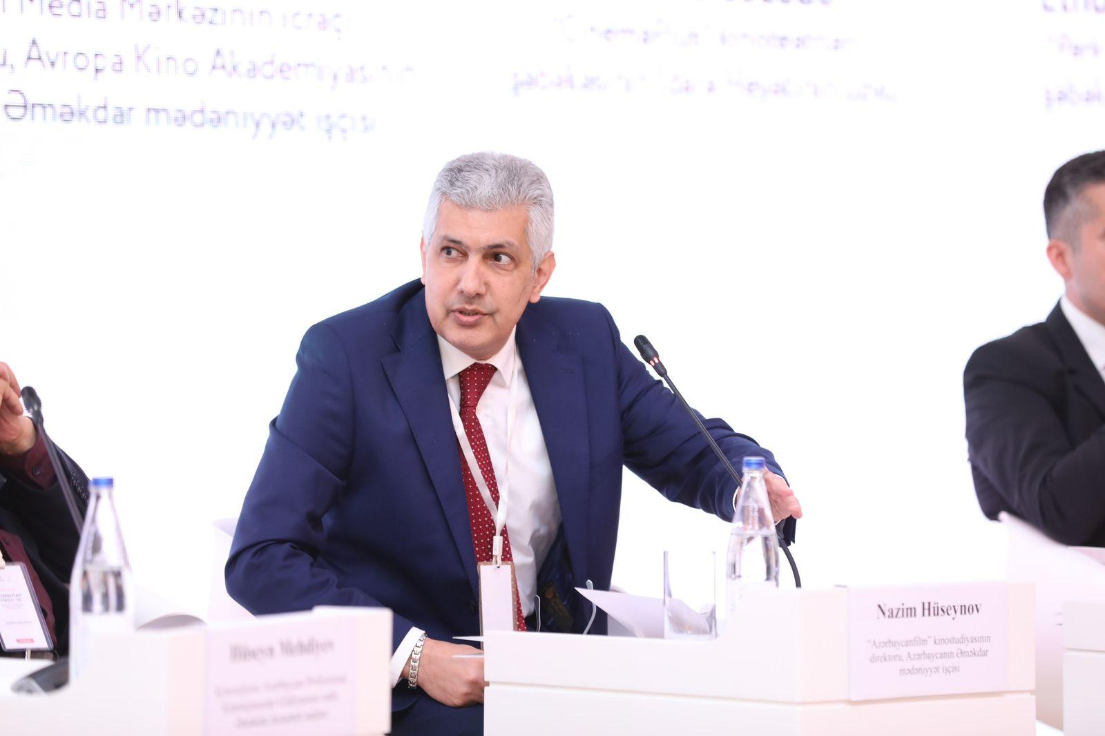 Forum çərçivəsində Azərbaycan kinosunun bu günü və gələcəyi ilə bağlı təkliflər müzakirə olunur.
