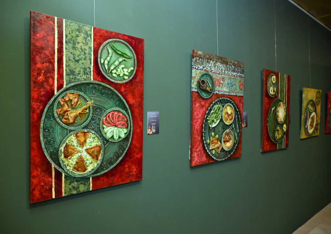 Sərgidə müəllifin 2024-2026-cı illərdə kətan üzərində yağlı boya ilə yaratdığı əsərləri təqdim olunub. Rəssam apardığı araşdırmalar əsasında ərsəyə gətirdiyi əsərlərdə milli mətbəxə, xalq tətbiqi sənətinin zərgərlik, toxuculuq, tikmə, bədii metal, soyuq silah, geyim və digər nümunələrinə müraciət edib. Kompozisiyalarda klassik Azərbaycan rəssamlıq ənənələrinə xas ornamental və bədii elementlərdən, xüsusilə Mirzə Qədim İrəvani üslubunun incəliklərindən məharətlə istifadə olunub.