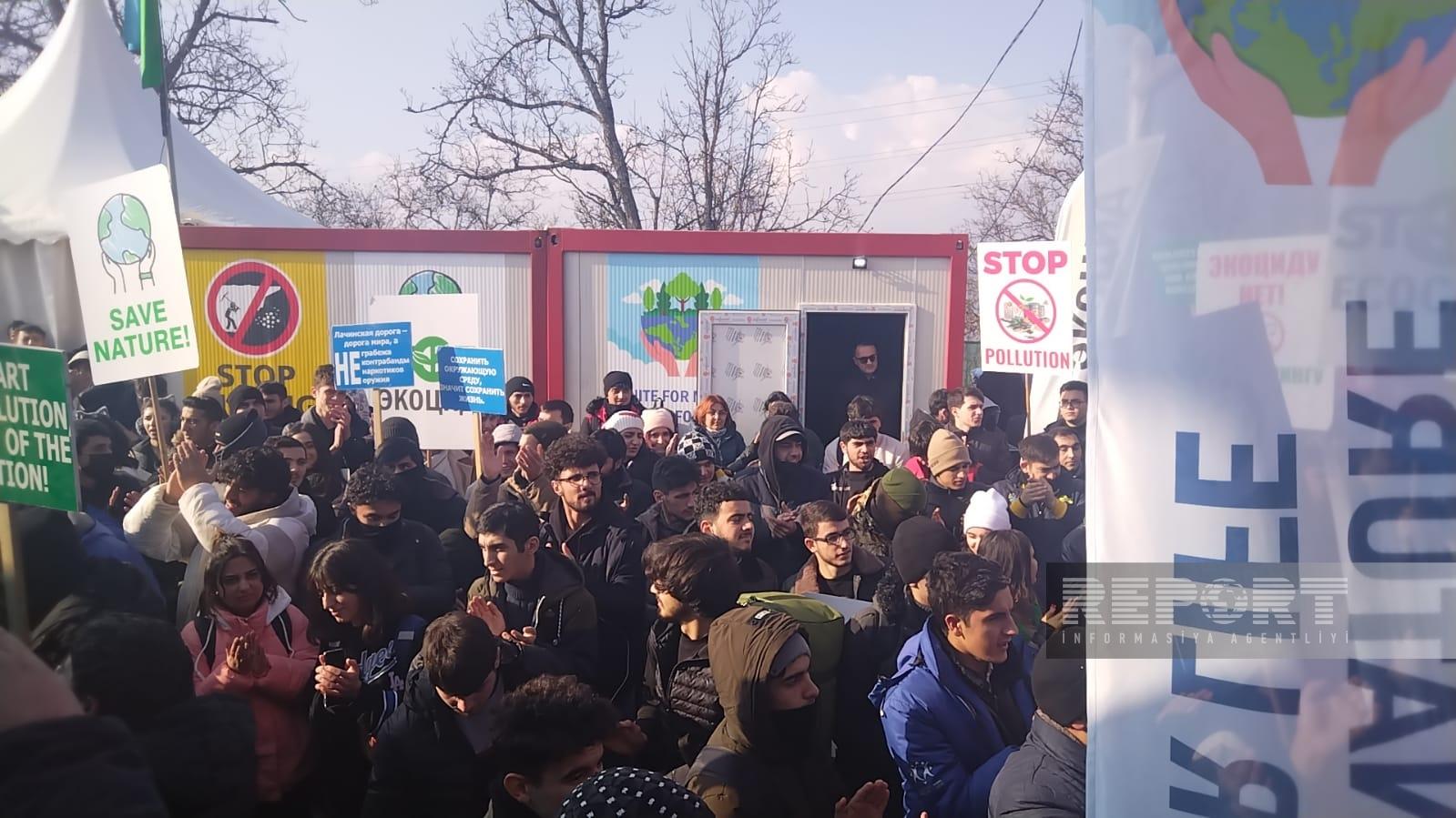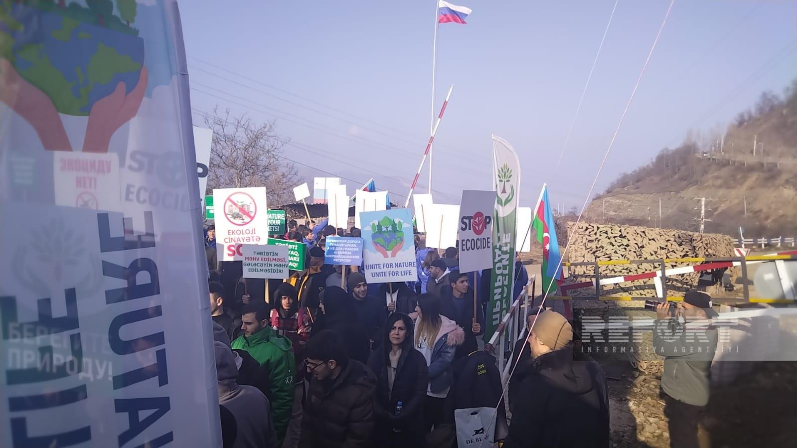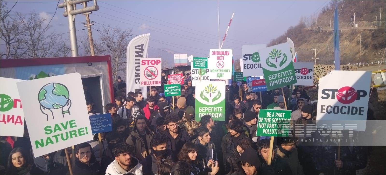 Hazırda ekoaktivistlər və gənc könüllülər “Azərbaycan oyaqdır, sərvətinə dayaqdır!”, “Azərbaycan vahiddir, sərvətinə sahibdir!”, “Ekoloji cinayətə son!”, “Stop ekoterror!”, "Берегите природу!" "Экоциду нет! Мониторингу да!" şüarlarını səsləndirirlər.