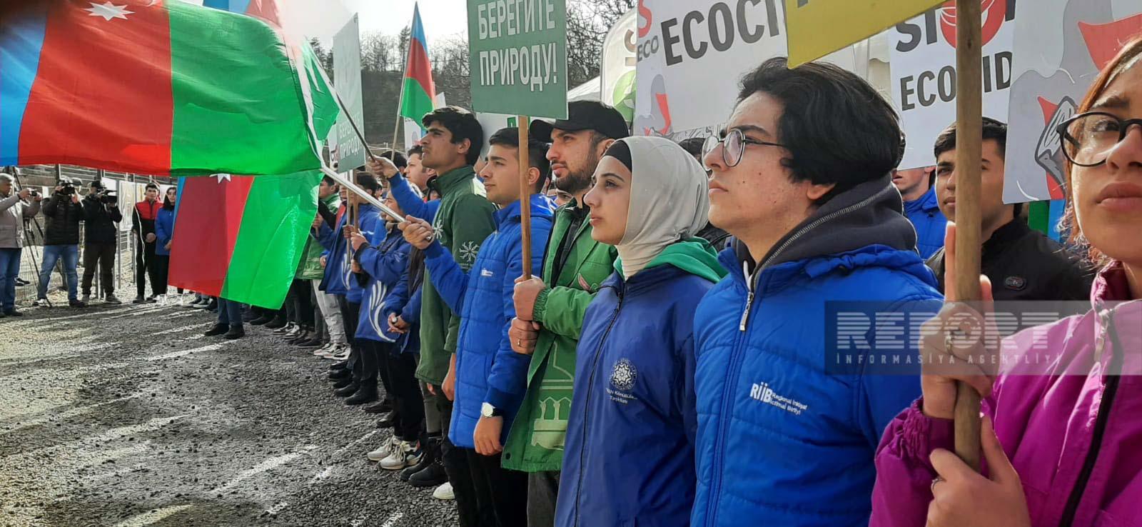 Bu dəqiqələrdə ekofəallar və gənc könüllülər yolun Laçın və Xankəndi istiqamətlərində hərəkətə maneə törətmədən dəyişməz olaraq “Azərbaycan oyaqdır, sərvətinə dayaqdır!”, “Azərbaycan vahiddir, sərvətinə sahibdir!”, “Ekoloji cinayətə son!”, “Stop ekoterror!”, "Берегите природу!", "Экоциду нет! Мониторингу да!" şüarlarını səsləndirirlər.