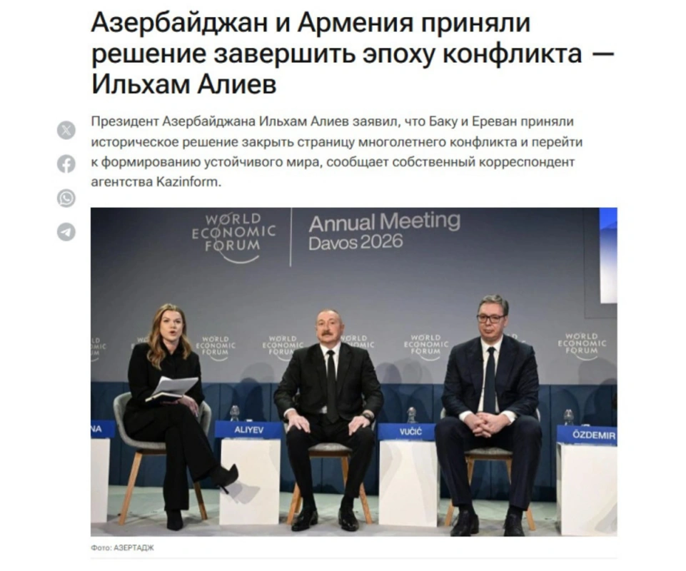 Moderator.az xəbər verir ki, "Kazinform" agentliyi Prezident İlham Əliyevin Bakı və İrəvanın çoxillik münaqişə səhifəsini bağlamaq və dayanıqlı sülhə keçmək üzrə tarixi qərar qəbul etdikləri barədə sözlərini sitat gətirir.