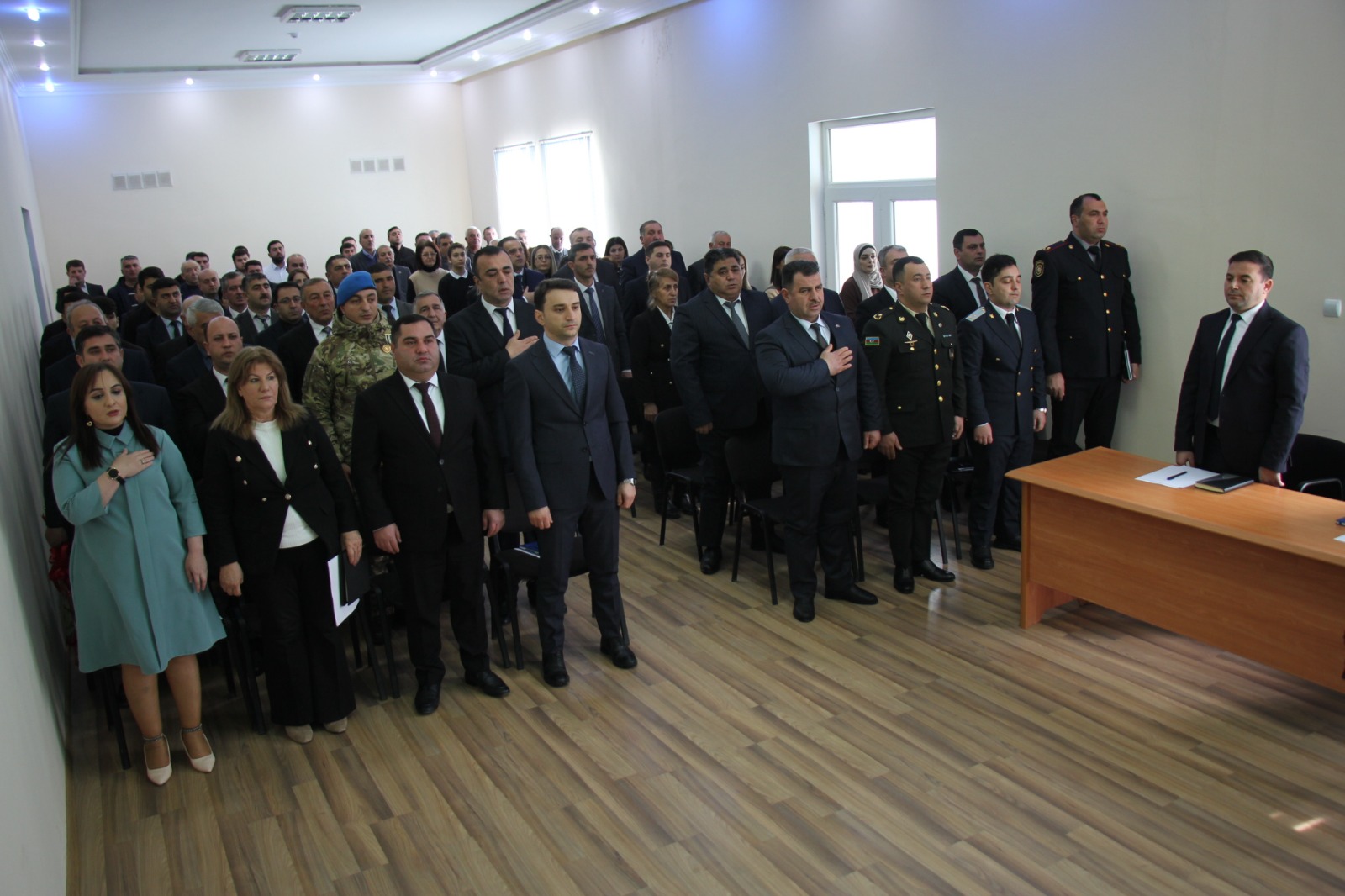 Moderator.az xəbər verir ki, Rayon icra hakimiyyətinin akt zalında keçirilən tədbirdə Xocalı rayon İcra Hakimiyyətinin başçısı Şahmar Usubov, Azərbaycan Respublikası Prezidentinin Administrasiyasının Ərazi-təşkilat məsələləri şöbəsinin 12-ci ərazi sektorunun müdiri Ziya Məmmədov, Milli Məclisin deputatı Elman Məmmədov, idarə və müəssisə rəhbərləri, şəhid ailələri, qazilər və ictimaiyyət nümayəndələri iştirak ediblər.