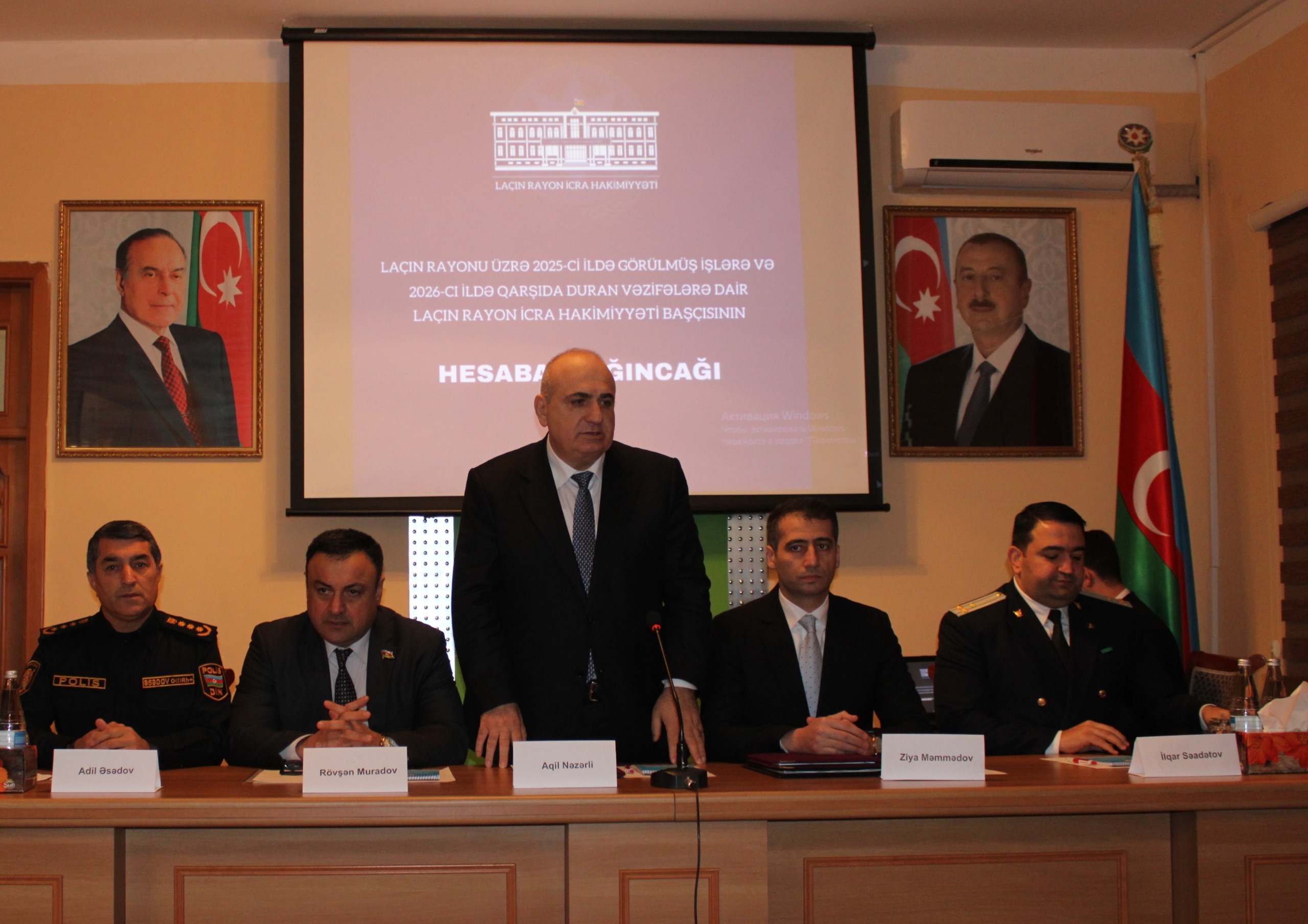 Laçın Rayon İcra Hakimiyyəti başçısının 2025-ci ildə görülmüş işlərin yekunlarına və 2026-cı ildə qarşıda duran vəzifələrə həsr olunmuş hesabat yığıncağı keçirilmişdir.