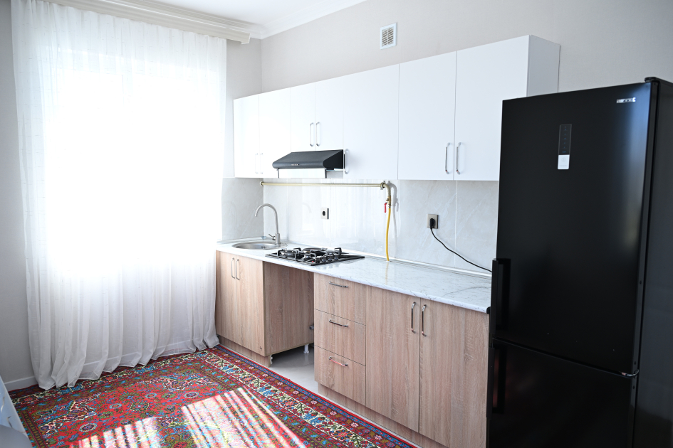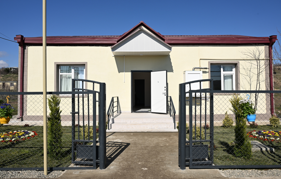 Görülmüş işlərlə tanışlıqdan sonra Prezident İlham Əliyev, birinci xanım Mehriban Əliyeva və qızları Arzu Əliyeva kəndə köçmüş sakin Rizvan İbrahimovun evində yaradılmış şəraitlə tanış oldular və söhbət etdilər.