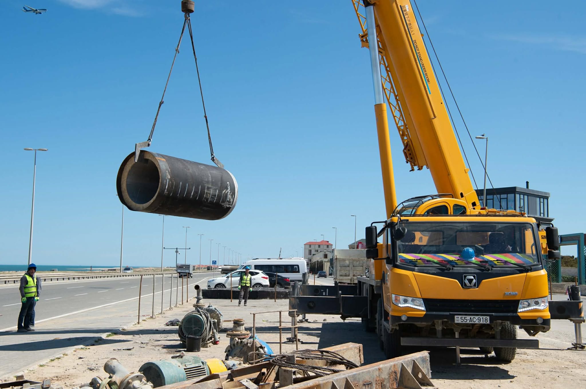 Azərbaycan Dövlət Su Ehtiyatları Agentliyinin İri Şəhərlərin Birləşmiş Su Təchizatı Xidməti və Tikilməkdə Olan Obyektlərin Müdiriyyəti Bakı şəhəri və Abşeron rayonunda yeni kanalizasiya kollektorları və tullantı sutəmizləyici qurğuların tikintisi layihələrini davam etdirir.
