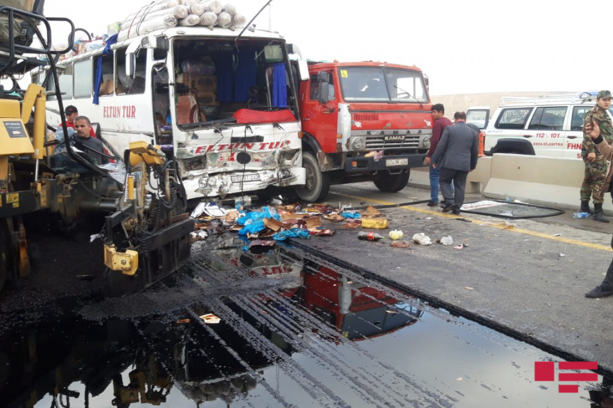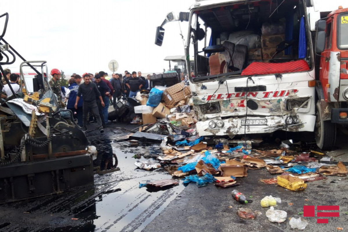 Как сообщает миль-муганское бюро АПА, на участке автомагистрали Гаджигабул-Горадиз, проходящем по территории Гаджигабульского района вместительный пассажирский автобус столкнулся с машиной-асфальтоукладчиком и автомобилем, перевозившим камни.